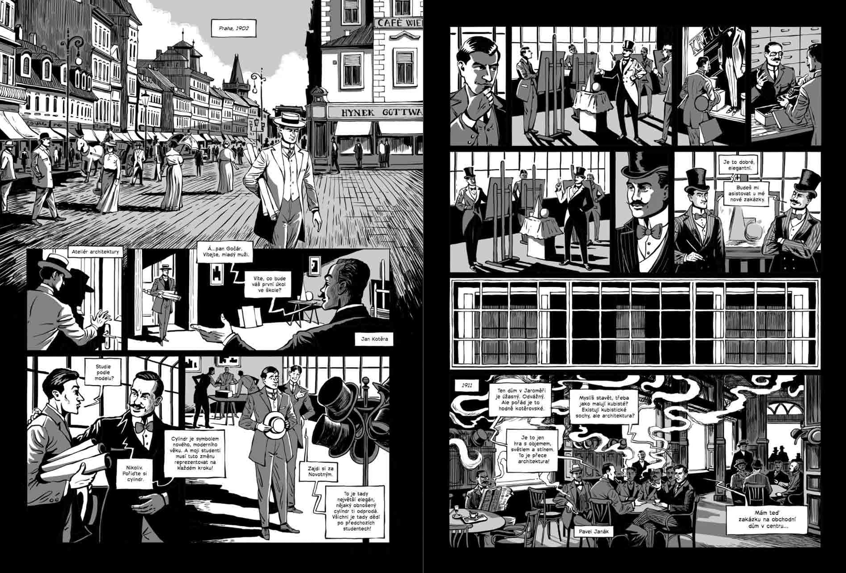 „Cestu českého výtvarného umění 20. století autoři vytyčují skrze důležité milníky jeho vývoje, klíčové události, díla a osobnosti. Odhalují přitom zajímavé souvislosti, a to jak textem, tak vtipnými komiksy a ilustracemi.“